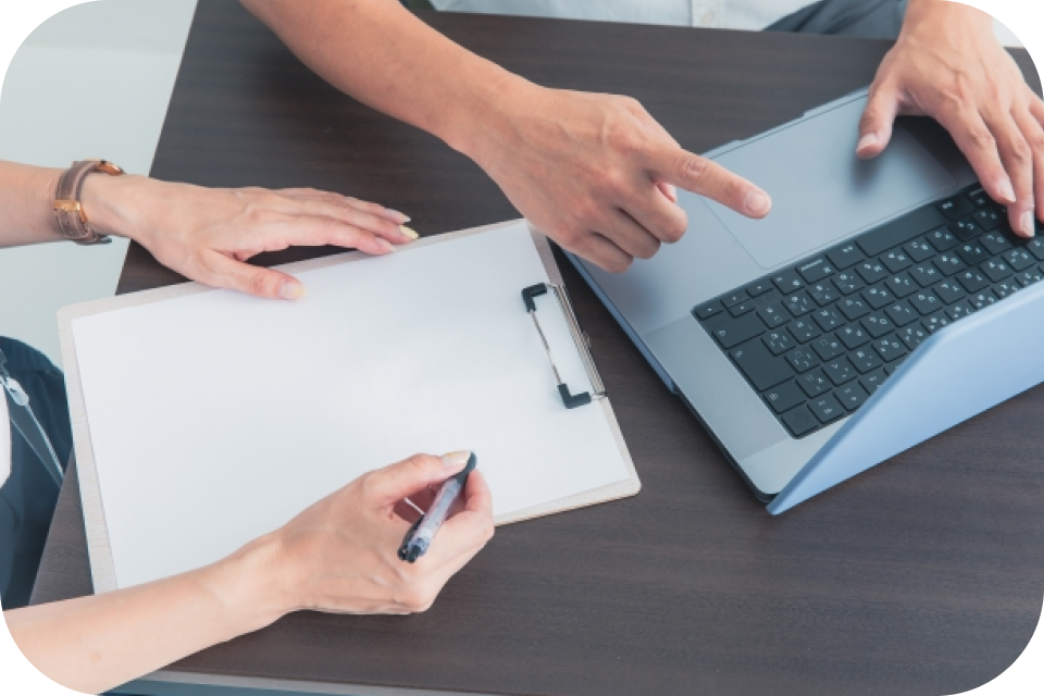 当事業所では、利用者の皆さまお一人おひとりに専用のメールアドレスを付与し、共有フォルダを活用しながら業務を進めていただきます。依頼された書類のスキャニングやデータ入力作業を、チームで連携しながら丁寧に取り組む環境です。